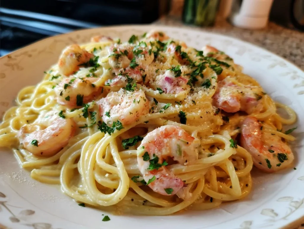 Schnelle Spaghetti mit Garnelen in Frischkäsesauce